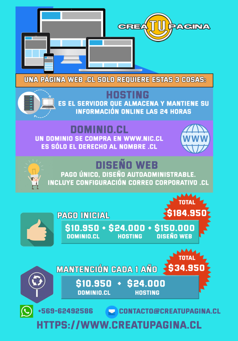 ¿Sabía usted que una página web .CL estándar, se mantiene sólo con $34.950 cada 1 año?
