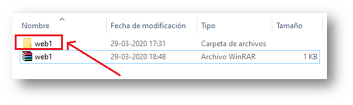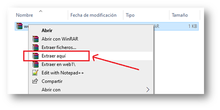 Vamos a la carpeta donde descargamos el archivo «web1.rar»