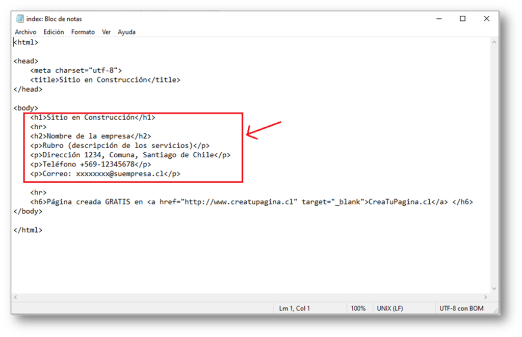 Al abrir el archivo, les quiero pedir el mayor cuidado y solo editar lo indicado aquí, teniendo mucho cuidado de no borrar códigos que podrían dejar este archivo con errores para abrir.