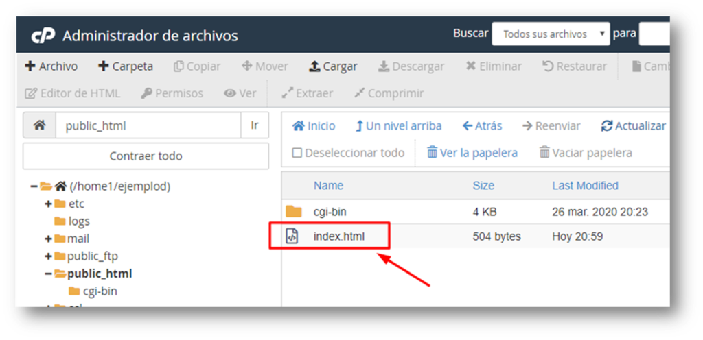Dentro encontraremos el archivo «index.html»