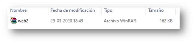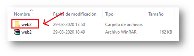Vamos a la carpeta donde descargamos el archivo «web2.rar»