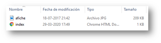 Dentro encontraremos los archivos «afiche.jpg» e «index.html»